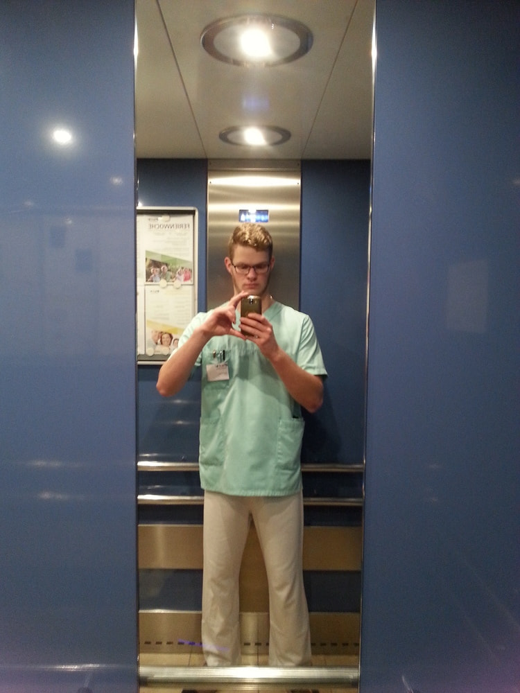 Besonders berührende Momente des Praktikums waren zum Beispiel jene, in denen ich meist ältere Menschen transportieren musste, die sich weder bewegen noch sprechen konnten und man nie wirklich wusste, ob sie einem verstehen und wie es ihnen geht. Aber auch der Umgang mit schwärst Demenzkranken, die alle paar Sekunden fragten, wo sie seien, war nicht immer einfach. Der größte Teil der Patienten war jedoch bei vollem Bewusstsein und trotz der angespannten Stimmung, die im Krankenhaus herrscht, überraschender Weise, sehr positiv gelaunt. Fast immer konnte man die Dankbarkeit der Patienten und ihrer Angehörigen spüren, wenn man sich für sie Zeit nahm und etwas länger bei ihnen blieb.