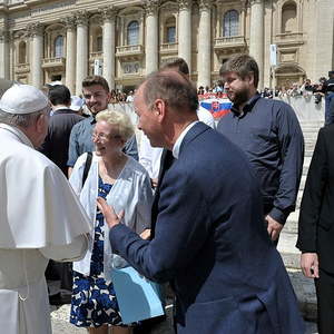 „Betet für mich!“, betonte Papst Franziskus, nachdem ihm Rektor Erwin Neumayer einige Mitbringsel aus dem Propädeutikum überreichte hatte, darunter auch ein T- Shirt mit dem Logo des Propädeutikums und eine Tasse mit eben demselben Logo „zum Trinken seines beliebten Matetees“.