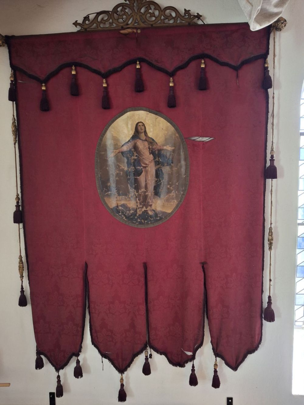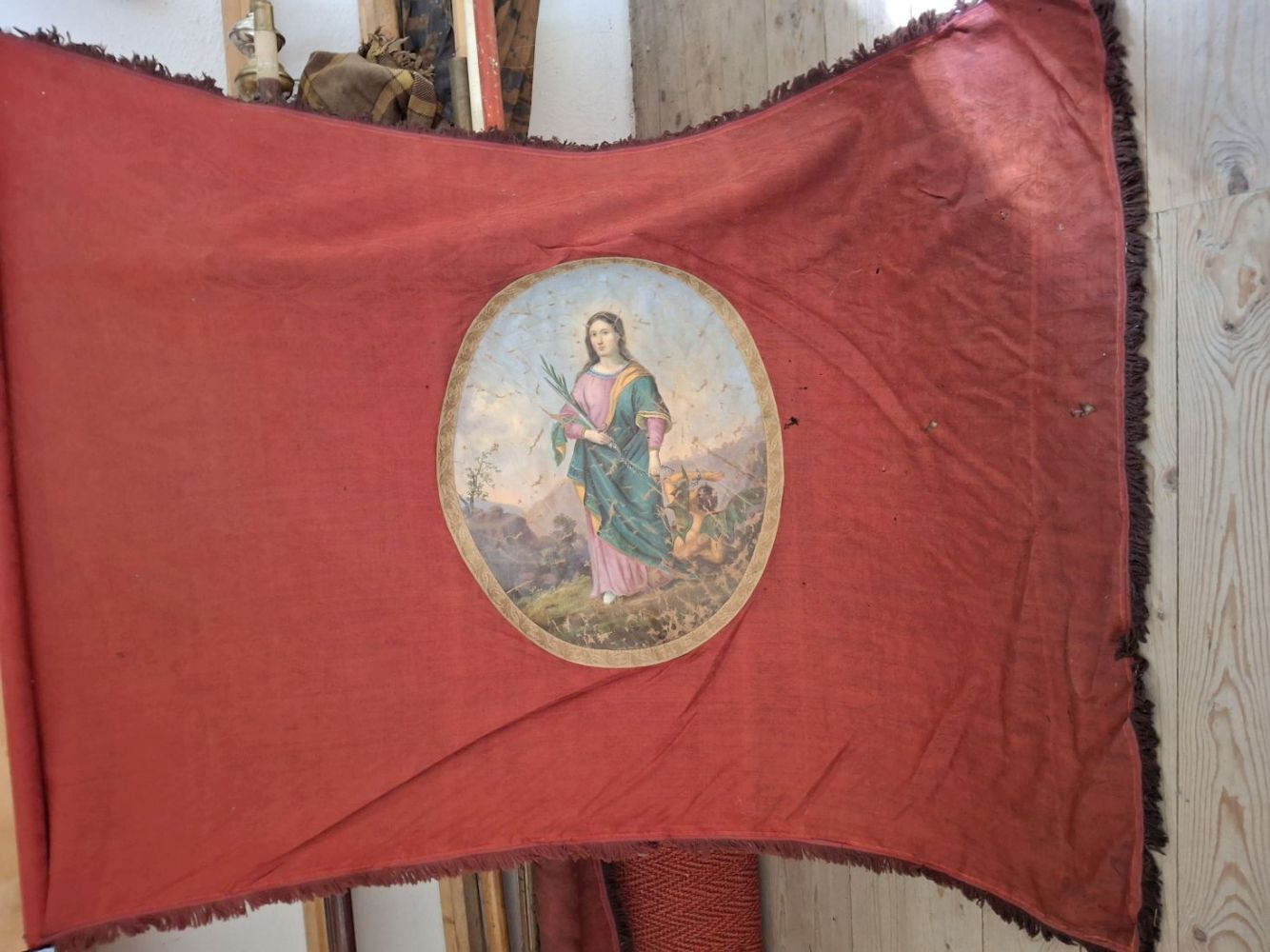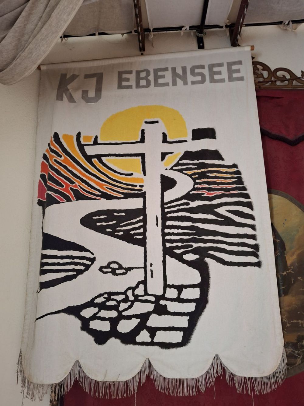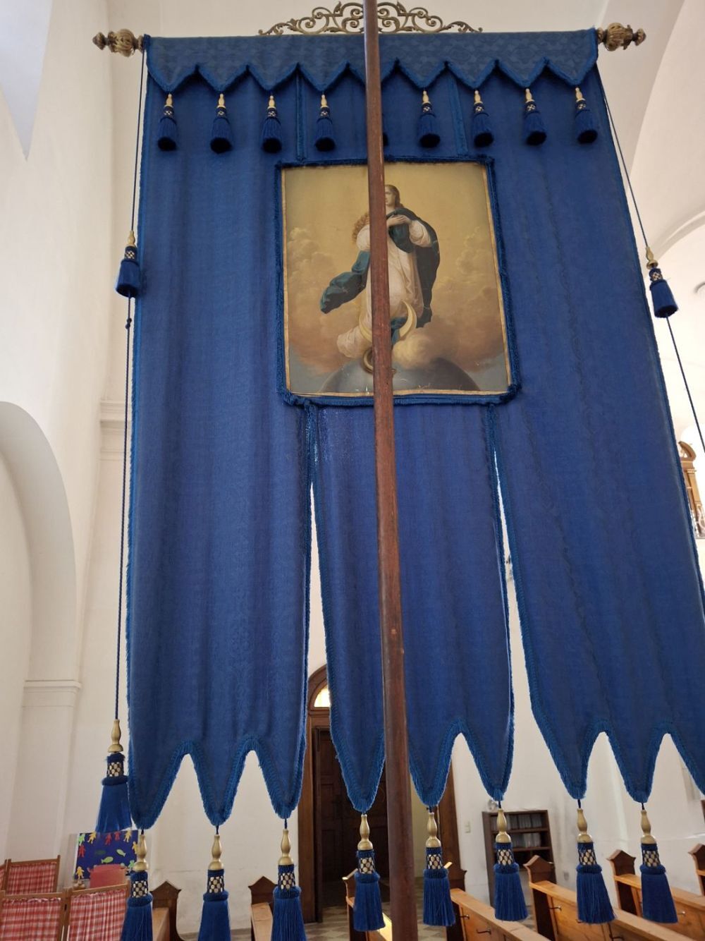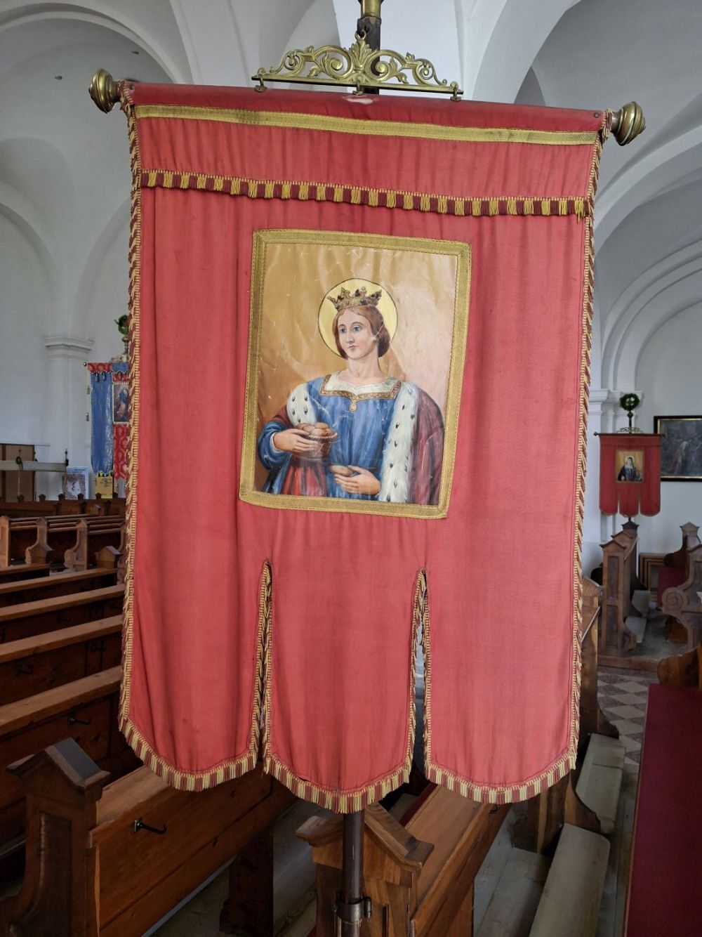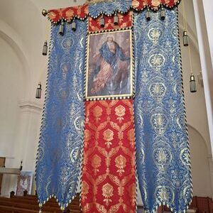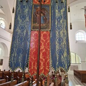 Bei der jährlichen Fronleichnamsprozession werden etwa zehn Fahnen mitgeführt, und sie bleiben anschließend für einige Zeit sichtbar in der Kirche.