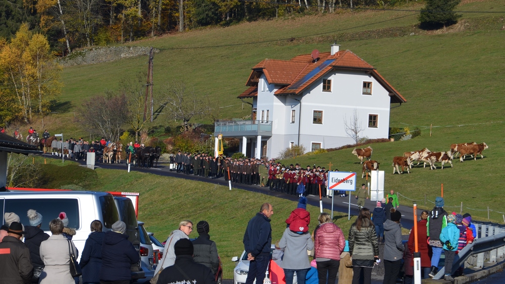 Der Festzug setzte sich aus Kreuzträger, Musikkapelle, den vier Freiwilligen Feuerwehren, Kameradschaftsbund, Jagdhornbläser, Lederhosenverein, Ministranten, Seelsorgeteam mit Pfarrgemeinderat, drei Gespanne mit dem Zelebranten, Bürgermeister, Ortsbauernobmann, etc., Gemeinderat, Ortsbauernausschuss und Reiter zusammen.