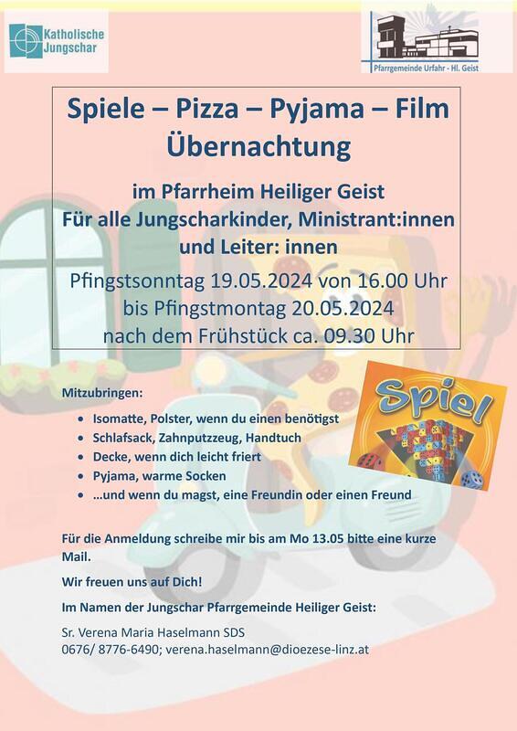 Pfingst-Übernachtung im Pfarrheim Die Jungschar-Kinder und Minis übernachten im Pfarrheim! mehr: Pfingst-Übernachtung im Pfarrheim