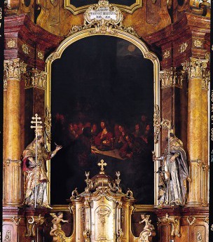 Im linken Seitenschiff befindet sich der Tabernakel mit dem Allerheiligsten.Das Altarbild wurde vom bedeutetenden Barockmaler Joachim von Sandrart gestaltet und ist wohl kunsthistorisch das wertvollste Bild in unserer Kirche.