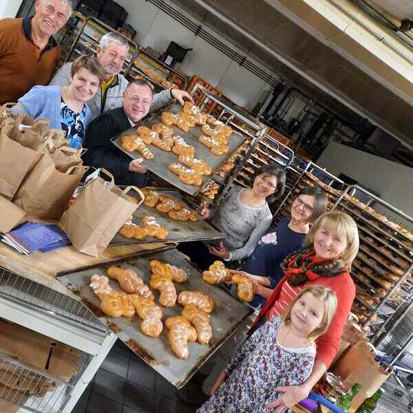Das kbw-Team organisierte zum 1. Advent-Sonntag auch heuer wieder die Aktion "Nußbacher Tannenzapfen". Mit Hilfe von Simon Wöckl und vielen HelferInnen gelang es die über 500 Tannenzapfen die bestellt wurden in der Bachstube der Kremstalbäckerei  zu formen und zu backen. Pater Gabriel gab den Tannenzapfen noch den Segen mit auf dem Weg.