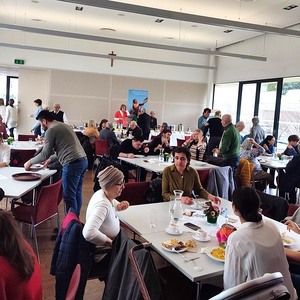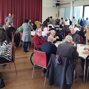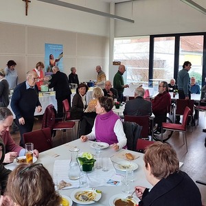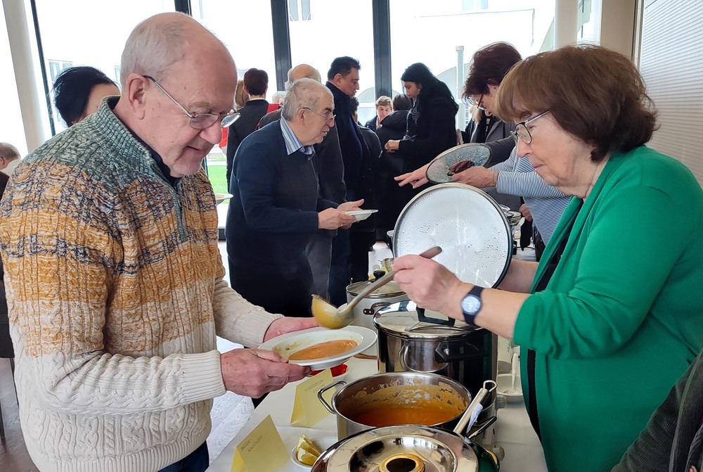 Der Pfarrsaal vorbereitet, die Tische gedeckt, das Suppenbuffet angerichtet,